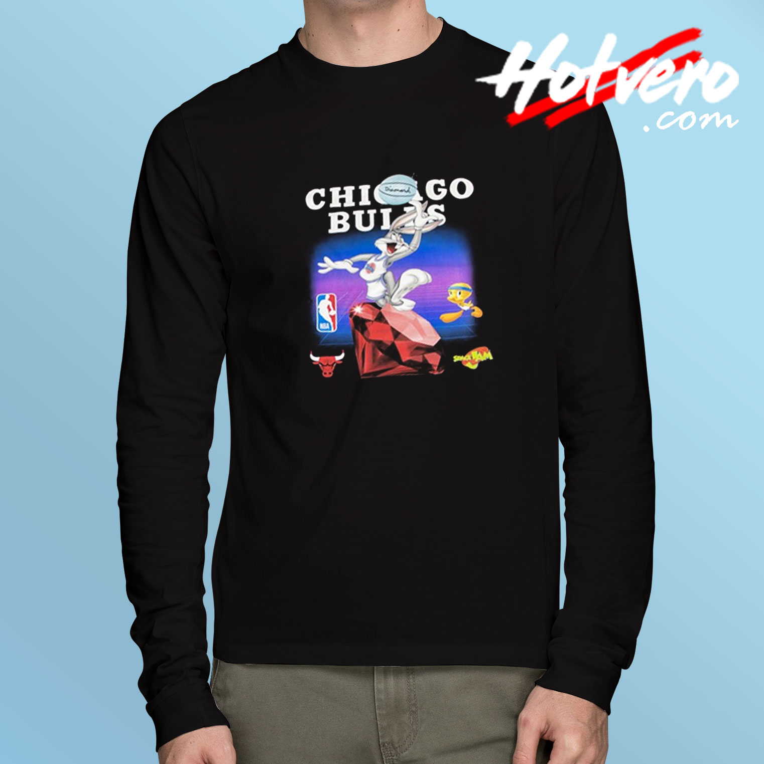 Cheap Chichago Bulls X Space Jam X Looney Tunes Long Sleeve T Shirt, Mens Long Sleeve Shirts, Streetwear Clothing