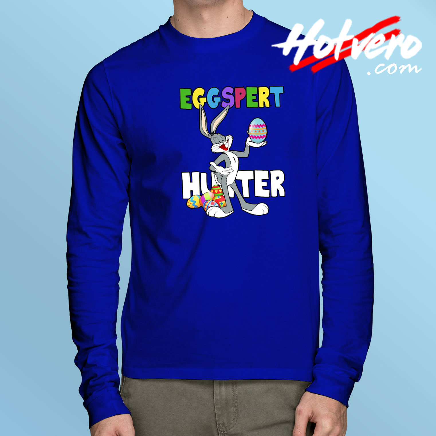 Cheap Eggspert Easter Bugs Bunny Long Sleeve T Shirt, Mens Long Sleeve Shirts, Streetwear Clothing
